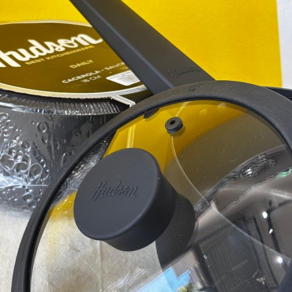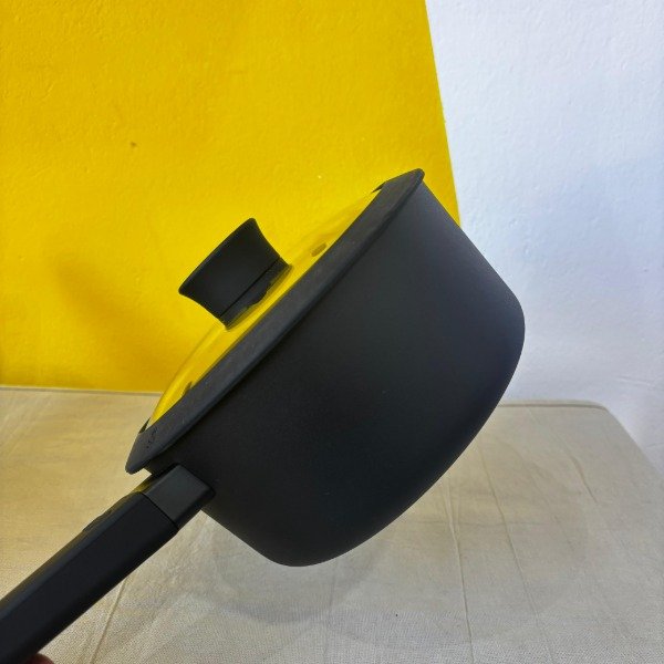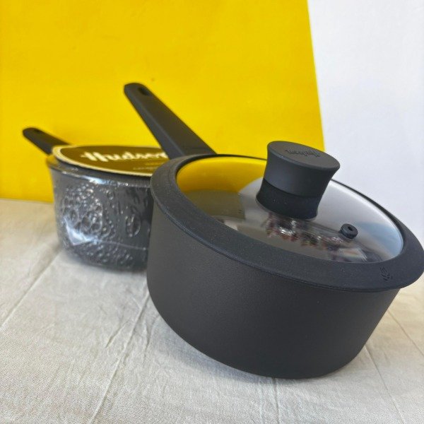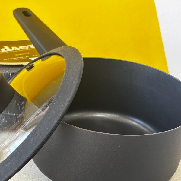 Cacerola de aluminio con 2 capas de antiadherente color negro con tapa y manija siliconada.