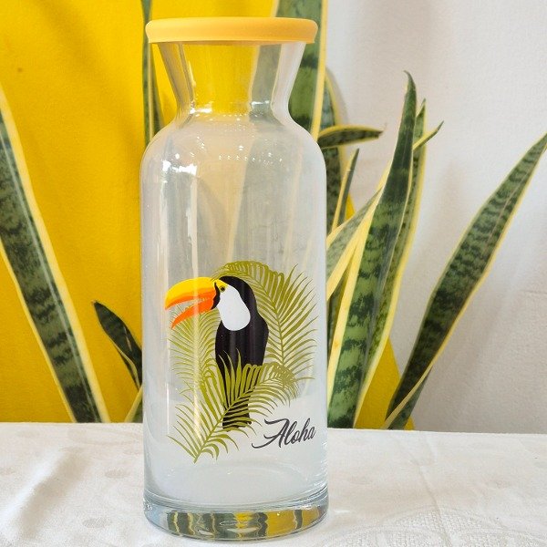 Botellón de vidrio con tapón de silicona.